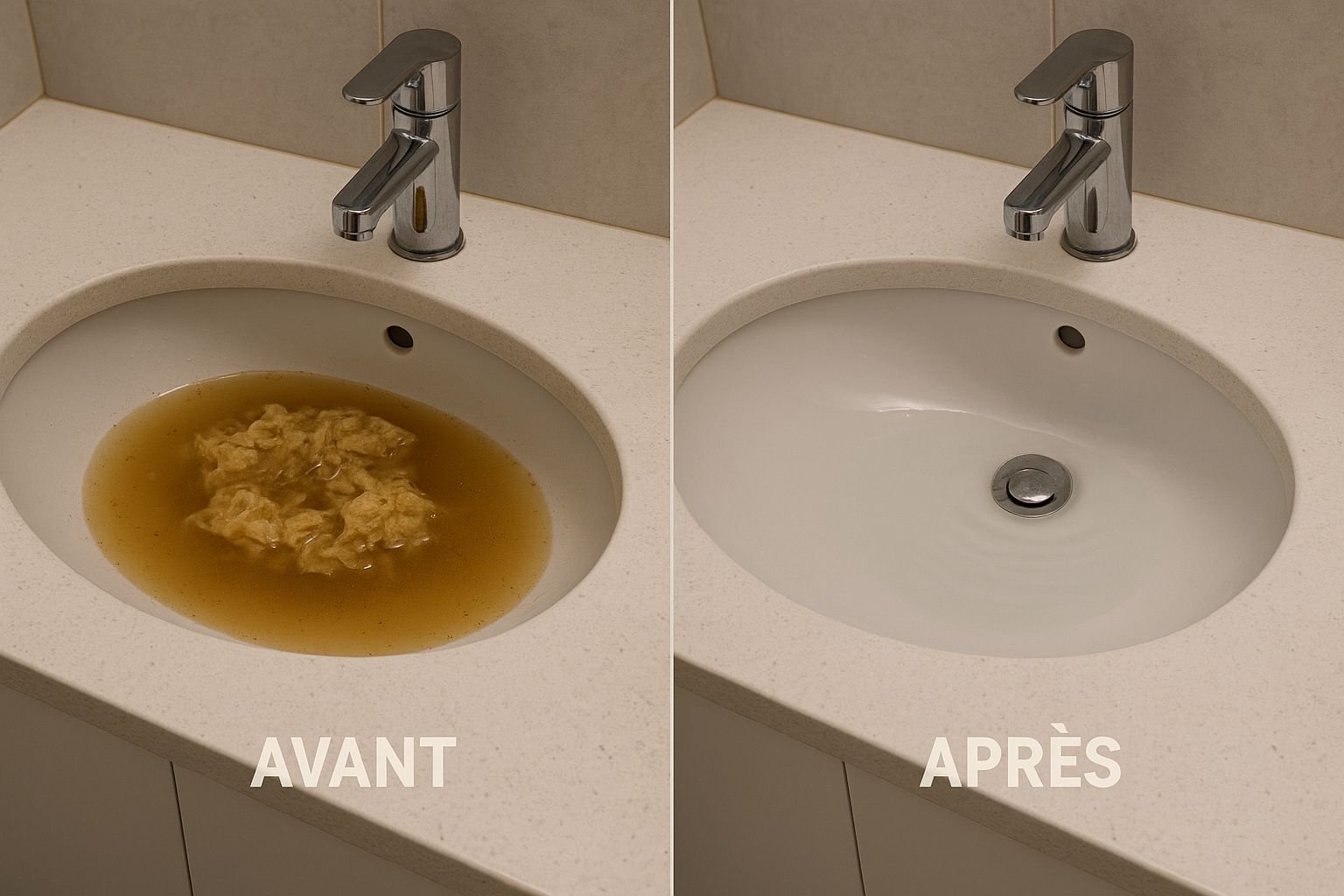 - Vinaigre blanc + bicarbonate : versez 100 g de bicarbonate, ajoutez 20 cl de vinaigre, laissez agir 30 min, puis rincez à l’eau chaude.